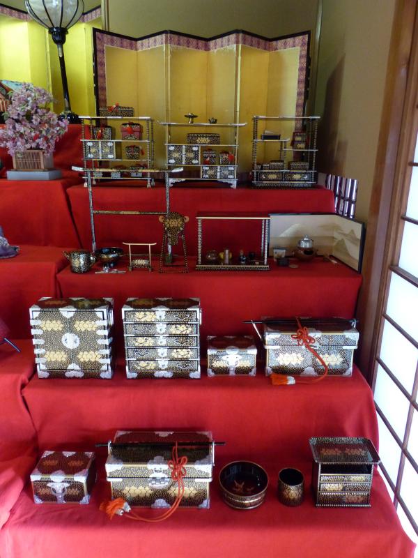昭和初期のお雛様とお道具を別々に飾って