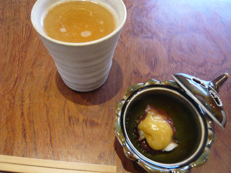 梅酒ソーダ割り蛸の辛子味噌和え
