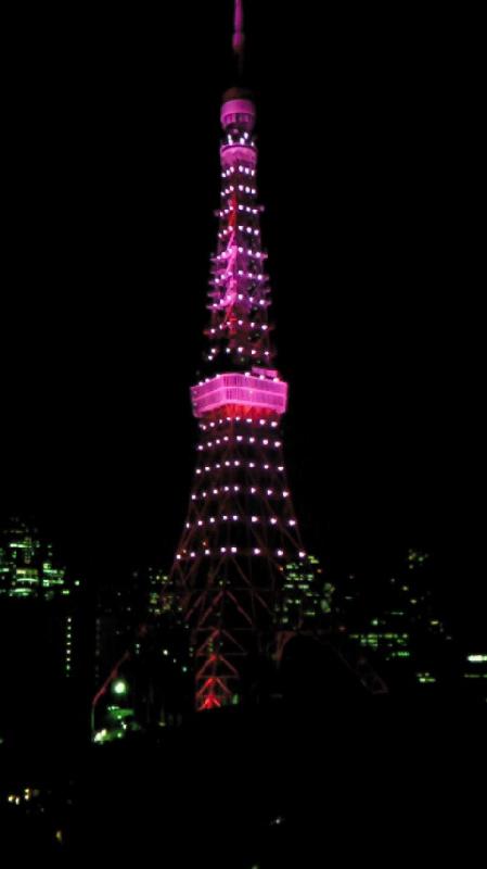 ピンクにライトアップされた東京タワー