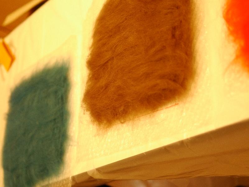 20センチの型紙に合わせて原毛を8段に薄く引きちぎり